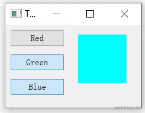 例子中创建了一个切换按钮和一个 QWidget ,并把 QWidget 的背景设置 为黑色。点击不同的切换按钮,背景色会在红、绿、蓝之间切换(而且 能看到颜色合成的效果,而不是单纯的颜色覆盖)