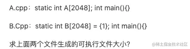 正如我之前说的。未初始化的static和global变量存在.bss段,初始化的static与global变量存在.data段。但是这样会对程序大小有什么影响呢?其实在.bss段没有初始化的变量都会被视为空值,由于都是空值也就没有必要占用文件大小的大小了。只需要在文件load的时候分配好对应的空间再赋初值就完事了,因此bss段只会记录一个需要的空间大小,这里就是2048 * 4字节。而初始化过的变量则需要记录相关的信息,因此初始化过的static变量需要占用相关空间,因此这2048个变量会增加文件的大小。值得注意的是如果初始化为0,这个时候变量也会存在bss段。