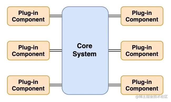 微内核架构模式包括两种类型的架构组件:核心系统(Core System)和插件模块(Plug-in modules)。应用逻辑被分割为独立的插件模块和核心系统,提供了可扩展性、灵活性、功能隔离和自定义处理逻辑的特性。