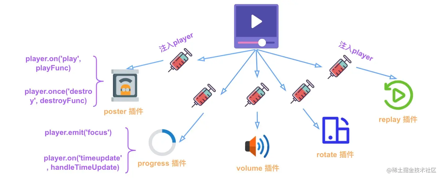 下面阿宝哥将以基于微内核架构设计的西瓜播放器为例,介绍它的内部是如何提供插件通信机制。在西瓜播放器内部,定义了一个 Player 类来创建播放器实例: