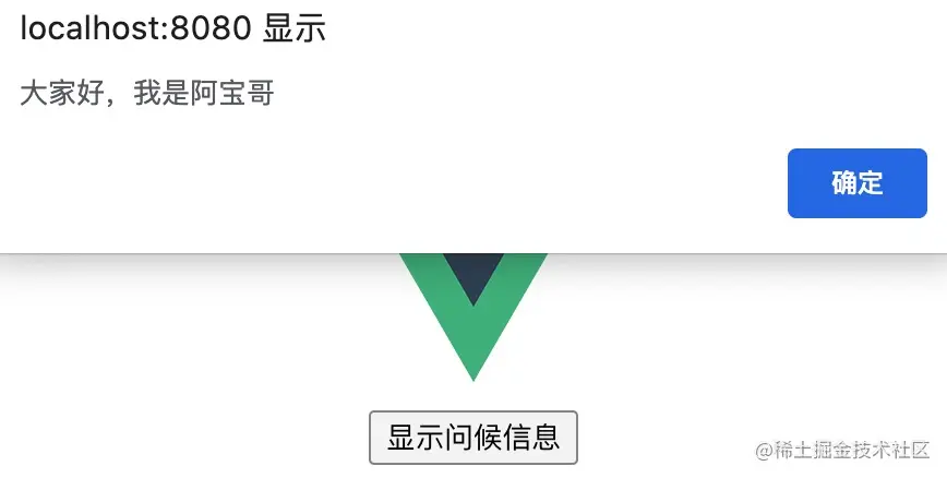 在 Vue 中我们可以通过创建 EventBus 来实现组件间或模块间的消息通信,使用方式很简单。在下图中包含两个 Vue 组件:Greet 和 Alert 组件。Alert 组件用于显示消息,而 Greet 组件中包含一个按钮,即下图中 ”显示问候消息“ 的按钮。当用户点击按钮时,Greet 组件会通过 EventBus 把消息传递给 Alert 组件,该组件接收到消息后,会调用 alert 方法把收到的消息显示出来。