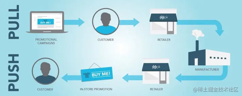 对于 XHR Polling 与 WebSocket 来说,它们分别对应了消息通信的两种模式,即 Pull(拉)模式与 Push(推)模式: