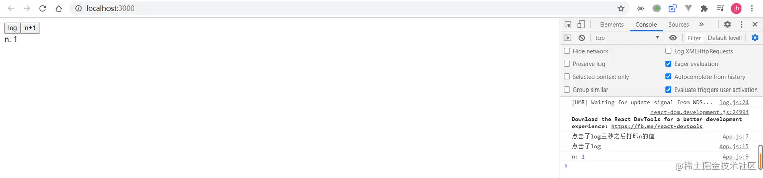 先点击n+1,后点击log