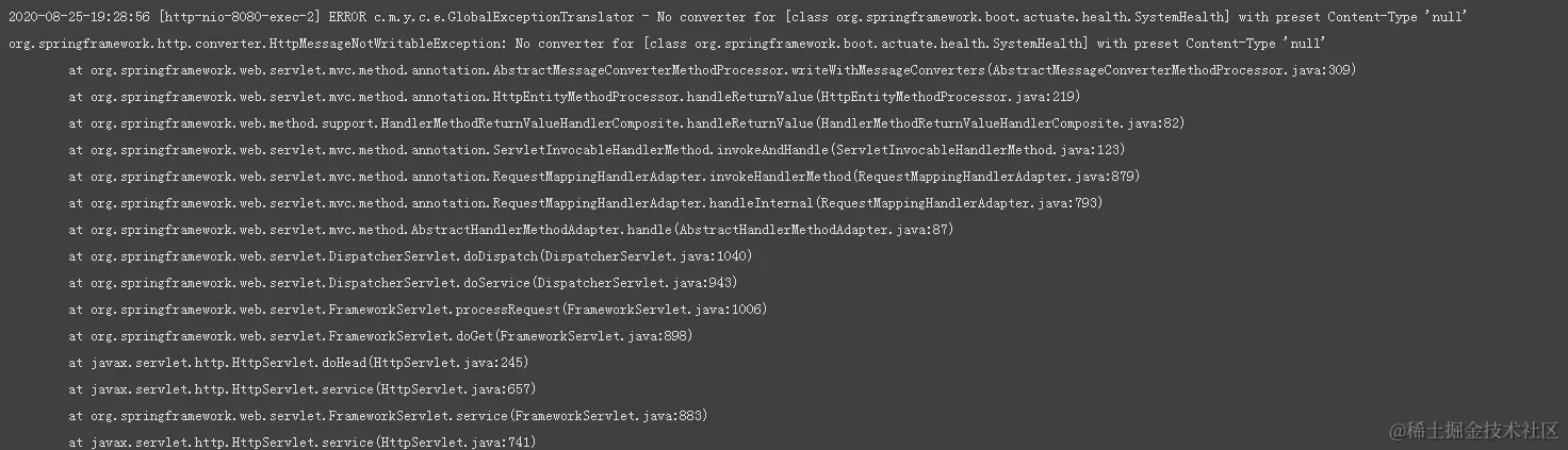 运维要求应用需要提供一个心跳接口,以配置kubernetes在pod重启时,使用心跳接口判断新的pod是否启动成功,以此为依据停止旧的pod。刚好,spring-boot-actuator框架提供了心跳接口,然而,接口却一直抛出如下异常。