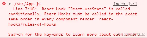 存在的问题: 在函数组件中不能使用条件判断去改变是否执行React.useState,React会直接报错,因为这种操作会导致顺序state的顺序出现混乱。