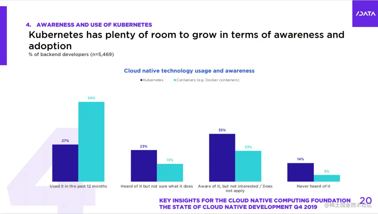 近期,CNCF 基金会发布了由 SlashData 为 CNCF 所做的最新云原生开发状态报告(以下简称报告),报告基于 SlashData 半年一次的开发者经济调查的数据,调查了17,000多名软件开发者关于后端服务的开发和他们使用的技术的问题。