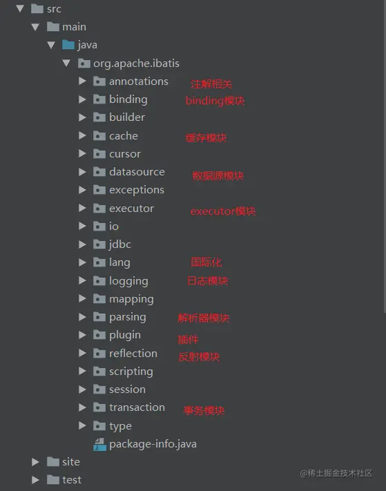 从MyBatis源码的package命名上就可以很清楚的知道对应模块的代码实现在哪里,结构清晰明了。
