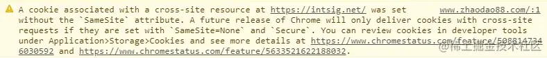 Chrome80之后更新了cookie的携带机制,把原来的SameSite属性,由None改成了Lax,这就导致了一些需要使用到第三方cookie的应用产生了异常。如果你这段时间有经常关注控制台的话,可能会发现一些warning: