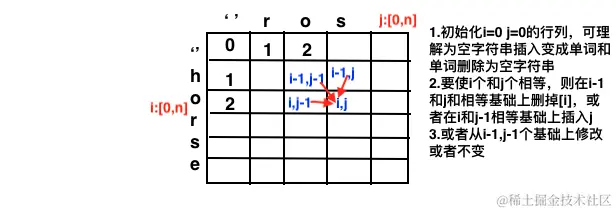 3.状态转移:f[i][j]表示word1的前i个字母转化成word2的前j个字母需要的最小次数: