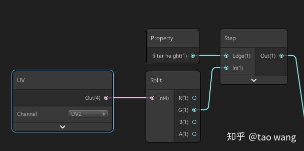 对于顶部下方的高亮线,有些太矮的建筑显然是不适合加入的。我们加入一个高度的过滤,只有比这个高度高的建筑,才有第二条高亮线。通过一个输入值来确定。还是用 UV2 上存的建筑高度来完成这个处理。