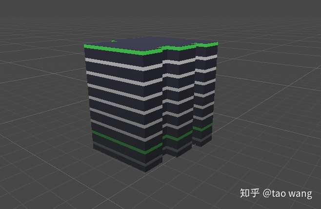 我们给边也填充一个基于高度的渐变色。给出两个输入颜色值,我们由世界坐标 y 值和 UV2 y 值保存的建筑总高度,通过插值,计算出每个像素的颜色。