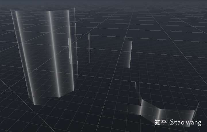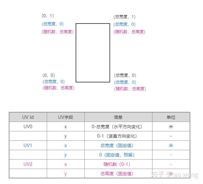 使用这三组UV,在 Shader 中每个像素都可以计算出自己在建筑某一条边的横向和纵向位置,从而可以制作很多和建筑物理尺寸相关的效果。