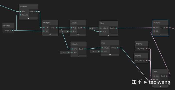 最终,我们使用第一步获得的底色作为 BaseColor,第二步和第三步获得的两个颜色相乘,作为动画的颜色,传入 Emission,就可以得到最终的效果了。