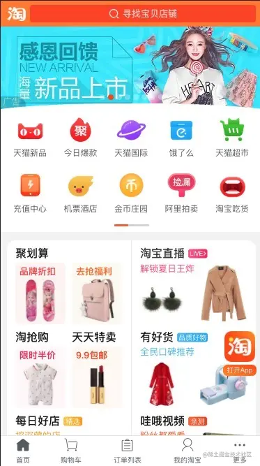 首先我们看张设计图,我们根据手机淘宝首页举例: