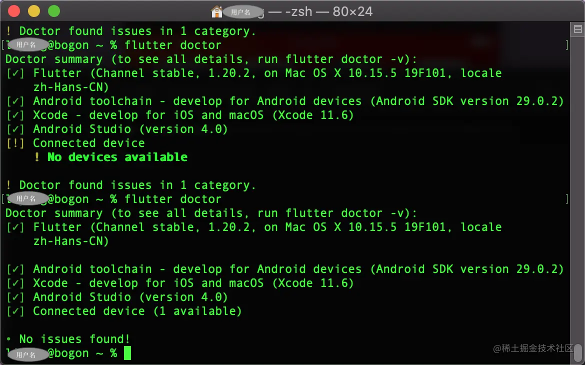 注意:有issues时按提示执行就ok,会出现nodevice 只需要连接真机或者打开iphone或者安卓模拟器就能消除issue。