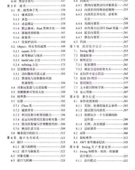 第9章详细讨论Swing GUI工具箱。Swing 工具箱允许建立一个跨 平台的图形用户界面。本章将介绍如何建立各种各样的按钮、文本组件、边框、滑块、列表框、菜单以及对话框等。一些更高级的组件将在卷II中讨论。