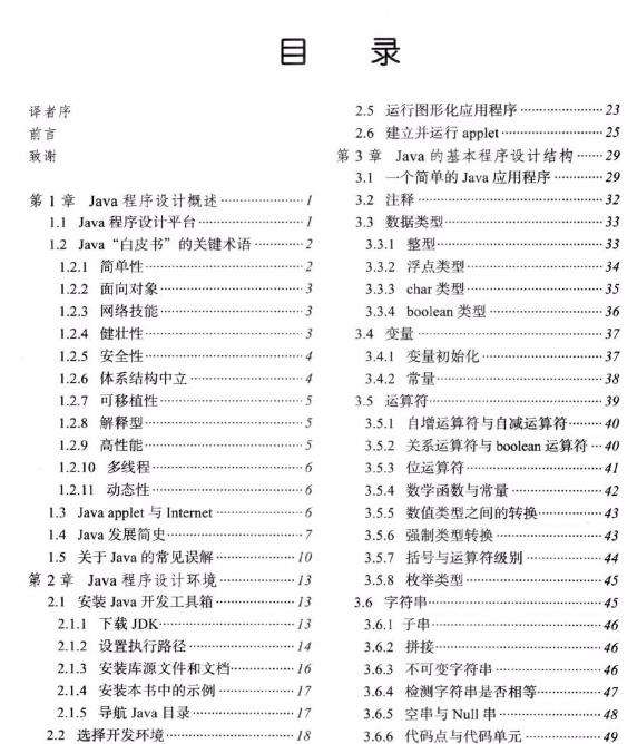 第3章开始讨论Java语言。这一-章涉及的基础知识有变量、循环以及简单的函数。对于C或C++程序员来说,学习这一章的内容将会感觉-帆风顺,因为这些语言特性的语法本质上与C语言相同。对于没有C语言程序设计背景,但使用过其他程序设计语言(如VisualBasic)的程序员来说,仔细地阅读这一章是非常必要的。面向对象程序设计( Object-Oriented Programming, 0OP)是当今程序设计的主流,而Java是--种完全面向对象的语言。