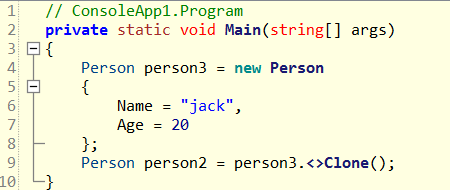 var person2 = new Person() { Name = "jack", Age = 20 };