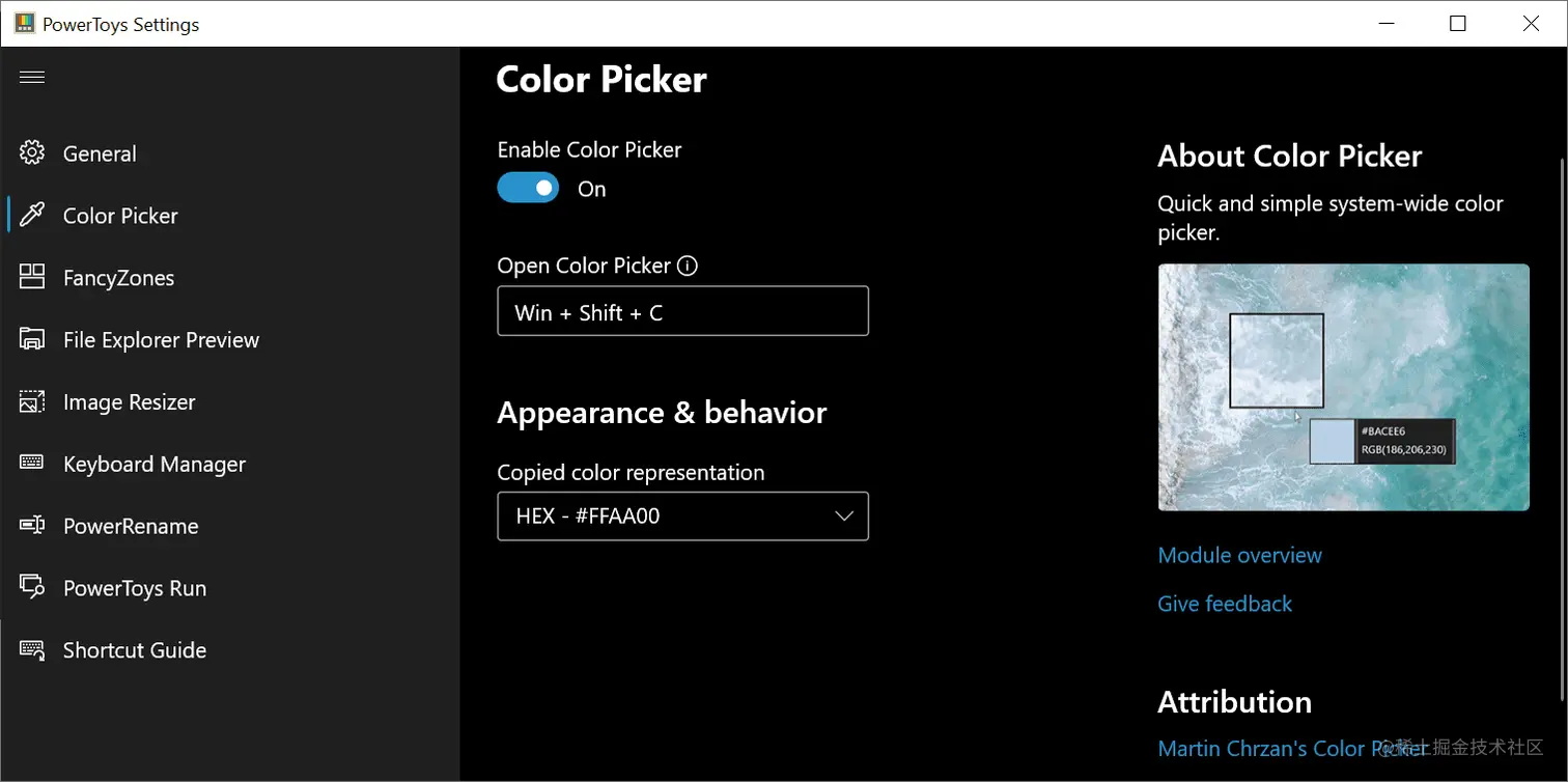 27、PowerToys:微软开源的 Windows 系统下强大的辅助工具。比如:窗口管理、批量图片处理、改键工具等,下图是屏幕颜色选择工具