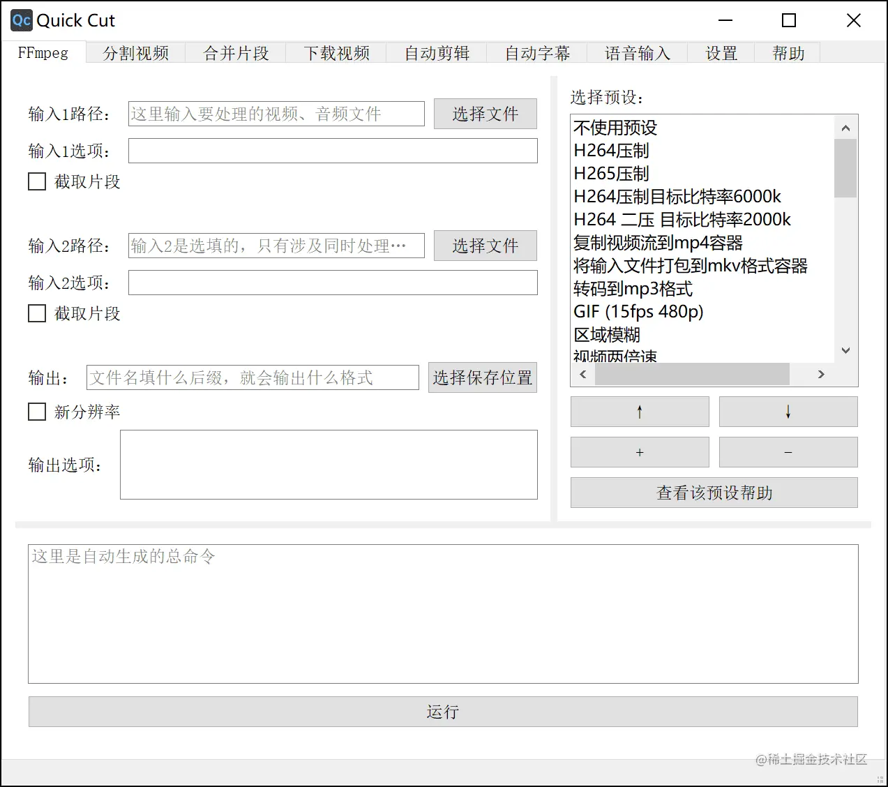 21、QuickCut:一款轻量、好用的开源视频处理工具。它是基于 PyQt5 开发的桌面工具,用于满足非专业用户的视频处理需求:压缩视频、转码视频、倒放视频、合并片段、根据字幕裁切片段、自动配字幕、自动剪辑等
