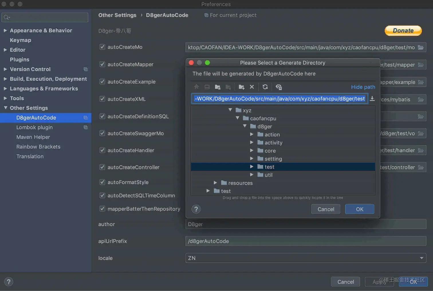 11、D8gerAutoCode:IDEA Java 代码自动生成插件。支持自动生成单表增删改查、分页、注释等