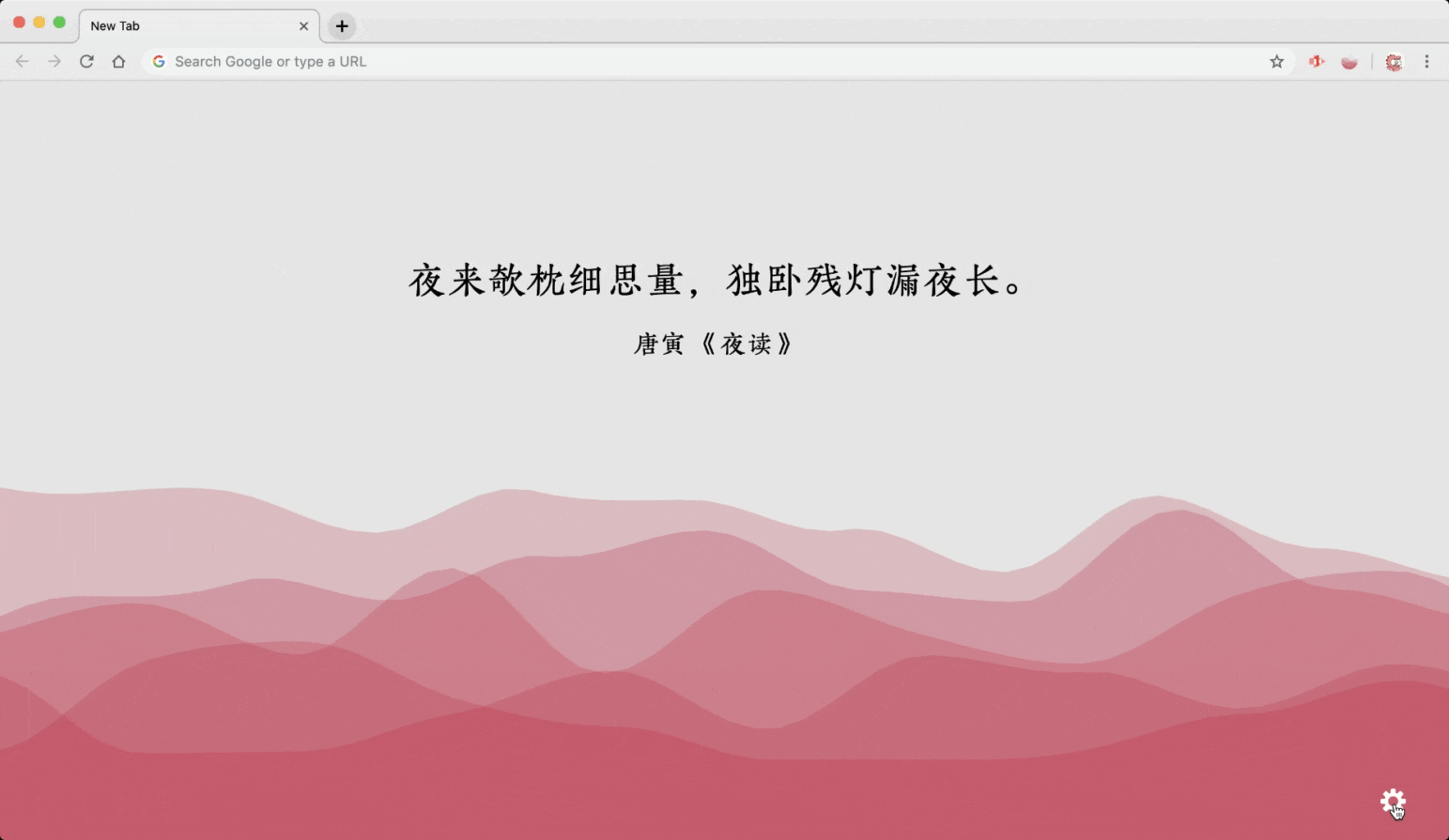 17、jizhi:中国风新标签页的 Chrome/Firefox 插件。它将在新标签页上展示中国传统色的层叠波浪动画效果,搭配经典诗词