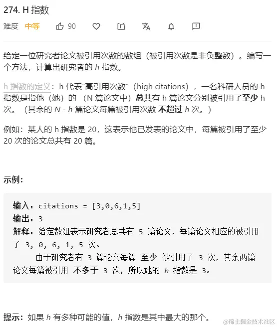 对所有citations排序,然后从大到小找第一个满足条件的那个citations就是H指数。