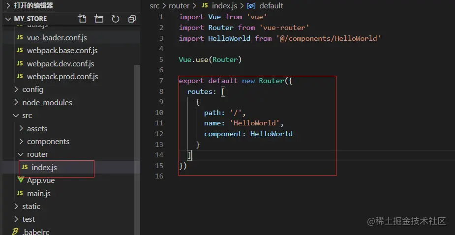 先看看官方自带的router,他直接把路由通过一个对象暴露出去。几个页面的项目,的确如此最简单。但是上百个页面的项目,将会十分杂乱。我们要在前期做好项目的准备。