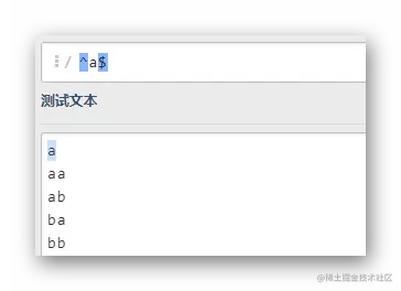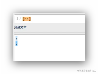 可以看到不管是字符a还是b都可以匹配这个表达式,它等同于[ab]