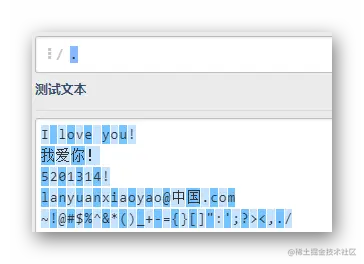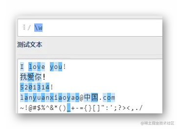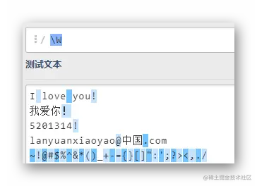 匹配了全部的单词字符,除了下划线之外的标点符号和汉字都被排除在外