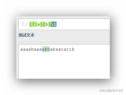 前面的组被取消命名,所以自动命名从(b)开始,所以后面的\1匹配的是(b)