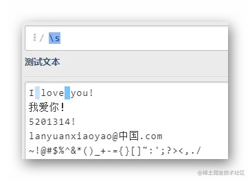 \s | 匹配任意空白字符(空格,制表符,换行符,中文全角空格) |
