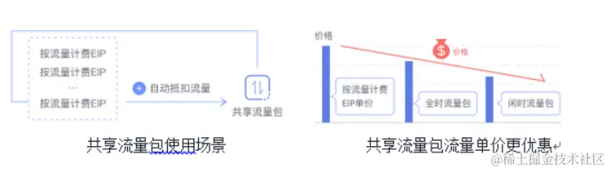 购买共享流量包后立即生效,并自动抵扣按需按流量计费的EIP带宽产生的流量资费,直到流量包用完或到期。