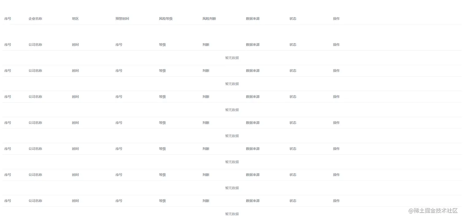利用element-table中的append的插槽, 在一个table中嵌入多个表格,再对每个表格进行单独的赋值,避免整个table组件不停的重绘,效果如下图: