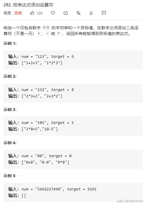我们可以在字符串num的最后一位加上一个'+',这样有一个好处,当我们搜索到倒数第二个位置(加上‘+’之前的最后一个位置)时,我们只要看 a的值是否是target就行了,如果a的值是target,则我们可以存下来当前的方案path(path是一个string类型的变量)。 这是因为如果最后一位是 '+',则当前的a被更新为a + b * c(上面分析过了),如果遍历完了原num字符串,这时的a就是最终的答案。