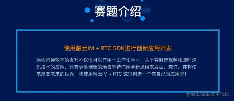 为鼓励开发者挖掘更多关于实时音视频和即时通讯技术的创意,大胆创新,融云发起了 Geek Online 2020 编程挑战赛,以“后疫情时代,通信云技术的创新及实践”为主题。选手可使用融云 IM+RTC SDK 进行创新应用开发,竞赛作品需集成融云官网最新版本的即时通讯 SDK 或实时音视频(直播)SDK。