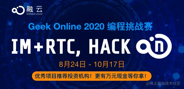 融云作为全球领先的互联网通信云厂商,一直致力于 RTC 技术的创新和发展,并在近日正式举办 Geek Online 2020 编程挑战赛,希望借此机会与全球开发者一道,共同寻找 RCT 技术的更多落地场景,开辟更多使用途径。