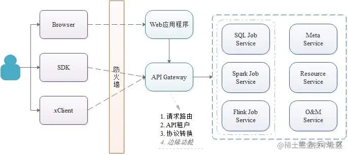 即对外以纯API形式提供服务,通过以API Gateway作为应用的入口,基于领域模型按子域进行微服务划分,从而实现Serverless化的大数据计算服务。
