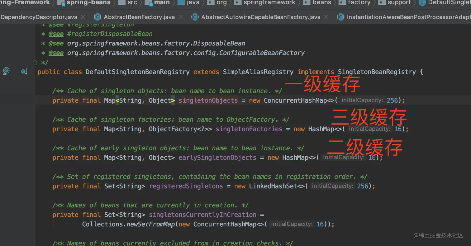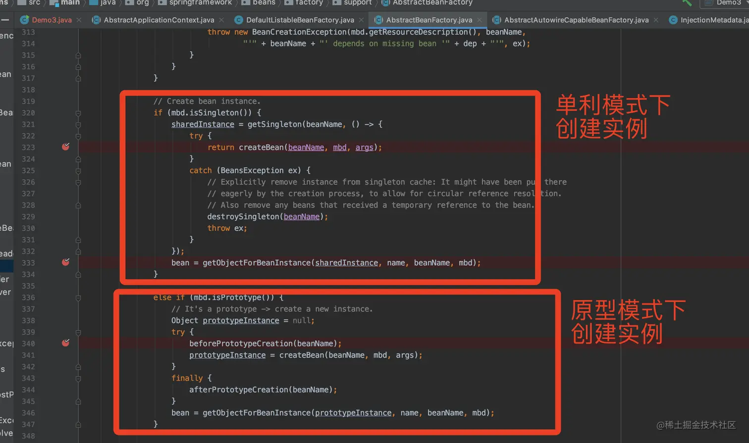 2.单利模式下,会使用spring三级缓存管理实例;原型模式下,不会使用spring三级缓存