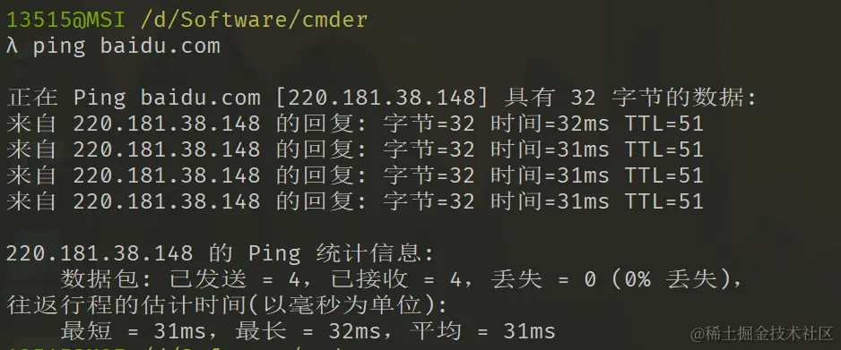 我们通常会用它来直接ping IP地址,来测试网络的连通情况: