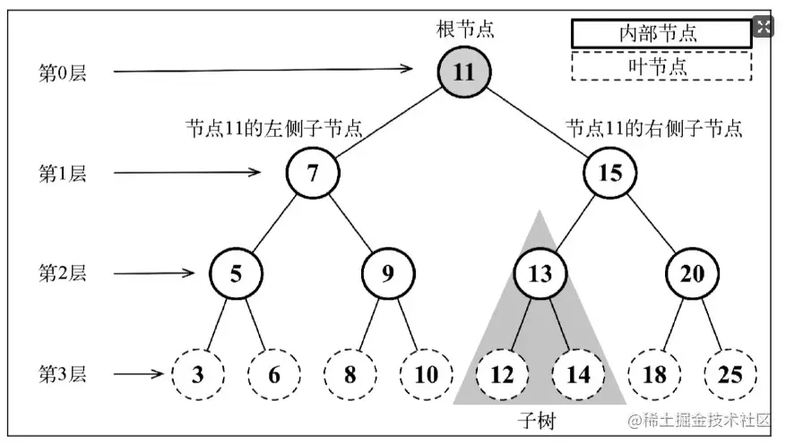 - 左右子树:左边的子节点为左子树,同理右子树;