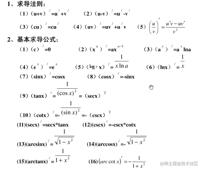 微分常见公式
