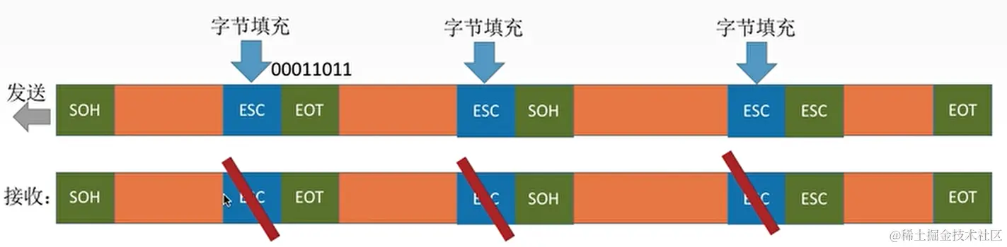 帧同步:接收方应当能从接收到的二进制比特流区分出帧的起始和终止
