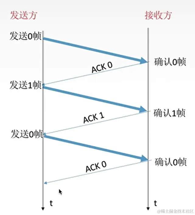 每发送完一个帧就停止发送,等待对方的确认,在收到确认后再发送下一个帧