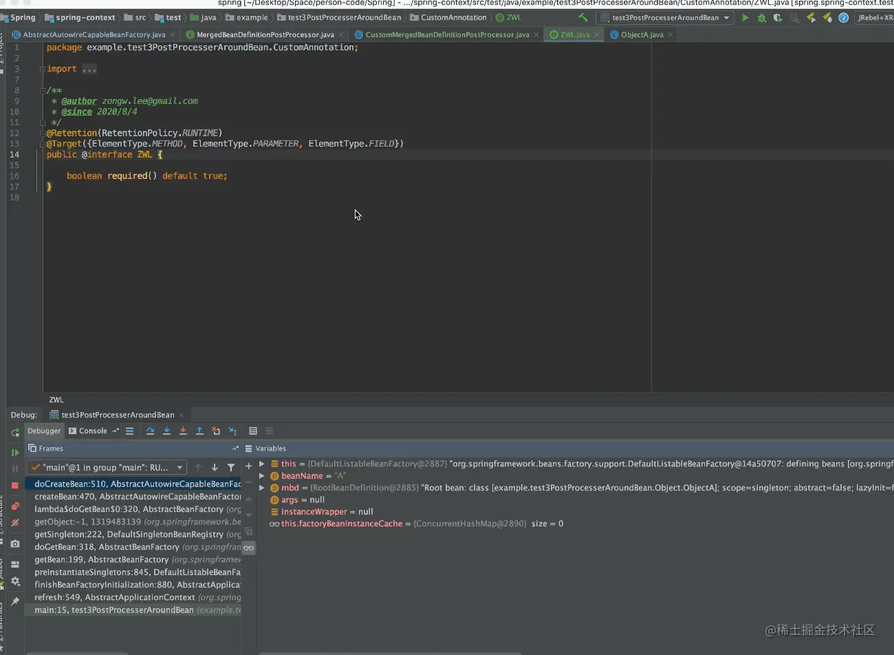 // 还是这个类,熟悉的味道,伴随着bean的整个实例化生命周期
