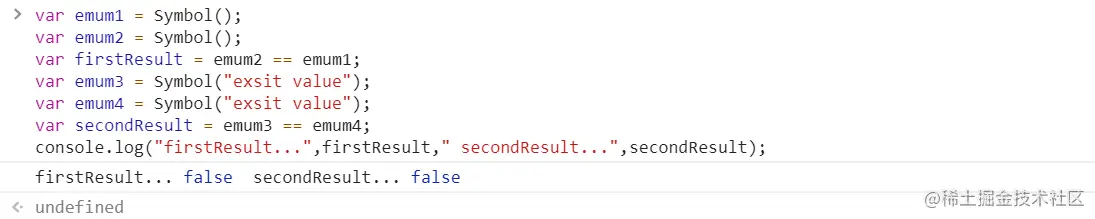所以Symbol值是独一无二的,即使Symbol函数使用相同字符串生成的Symbol值。