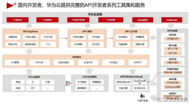 华为云自身的服务,以及合作伙伴的服务,通过API网关对外提供;