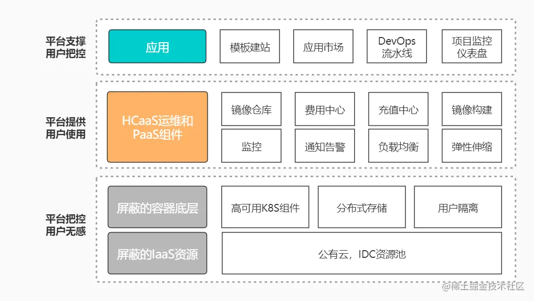 HCaaS基于公有云和网银IDC的优质云资源搭建混合云,封装了docker&k8s容器技术,并通过开箱即用的组件为应用提供支撑和模块化开发的便捷体验。