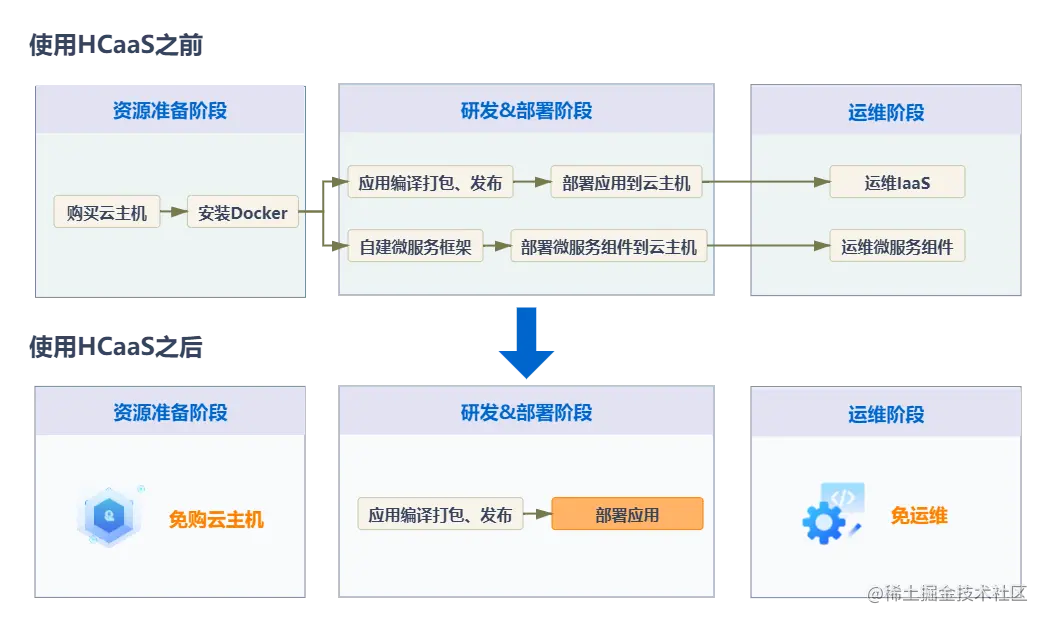 通过HCaaS,以K8S为代表的容器技术的门槛不再高高在上,无论用户的现有业务是基于镜像、源码、可执行文件,都可以方便地迁移到HCaaS,并享受只需专注业务本身的便捷。