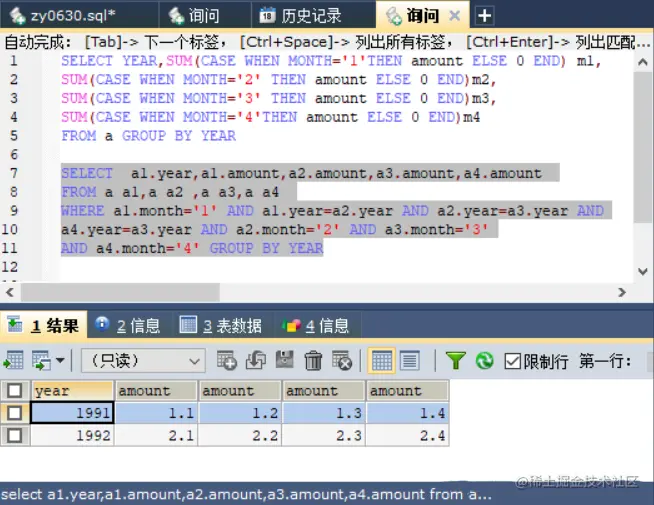 (1) 运用情况不同 sql 中 in 适用于子查询得出的结果集记录较少,主查询中的表较大且又有索引的表,。 sql 中 exist 适用于外层的主查询记录较少,子查询中的表大,又有索引的时候。